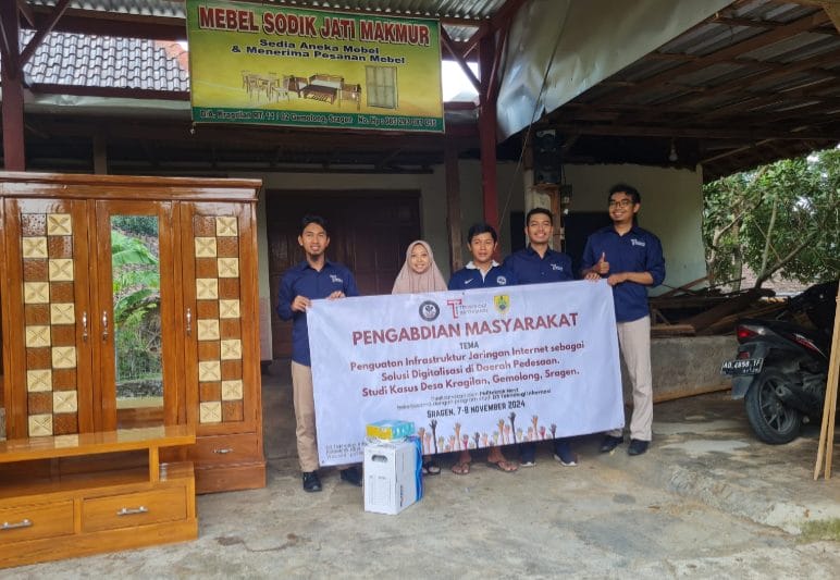 Dalam upaya mendukung percepatan digitalisasi usaha mikro kecil dan menengah (UMKM), Tim Pengabdian Masyarakat dari Program Studi D3 Teknologi Informasi Politeknik Nest melaksanakan program pemasangan jaringan internet di salah satu desa produktif di Kabupaten Sragen. Desa ini dikenal sebagai salah satu sentra pengrajin mebel dengan potensi ekonomi lokal yang kuat namun belum sepenuhnya terhubung secara digital (Sragen, 7 November 2024).